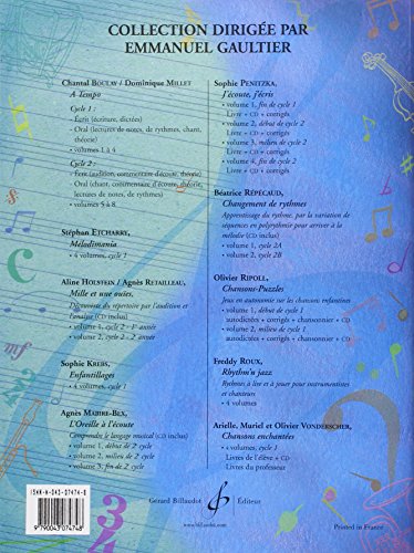 A Tempo - Partie Orale - Volume 1 Boulay Chantal pdf francais - A tempo - partie orale 1er cycle - 1ere année volume 1 Cette série d'une présentation claire et vivante, variée dans les styles d'exercices, est construite autour de chansons, musiques traditionnelles ou d'extraits d'œuvres classiques. Elle suit le programme d'un premier cycle de formation musicale en 4 ans, et s'adresse aux enfants comme aux adultes. Pour chaque niveau, le contenu pédagogique est réparti en deux volumes : - un volume pour l'oral : chant, commentaire d'écoute, théorie, lectures de notes, lectures de rythmes... - un volume pour l'écrit : écriture, dictée de notes et de rythmes, exercices de théorie... Ces 2 volumes (oral, écrit) sont indépendants et peuvent aussi s'utiliser conjointement.